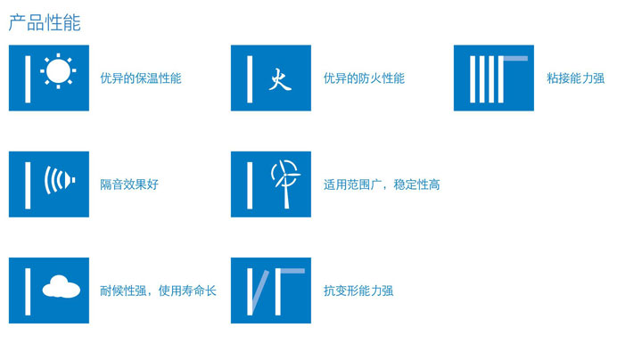 發(fā)泡體細胞細微均勻、隔熱性能良好、 耐火焰阻燃性能優(yōu)。因而在隔熱性能、 耐水透濕性、粘結性、抗壓性、抗曲性高。 阻燃性和冷縮率等方面呈現出優(yōu)良的品 質(zhì)??梢詮V泛的用于建筑外墻保溫的各 個(gè)保溫系統中。